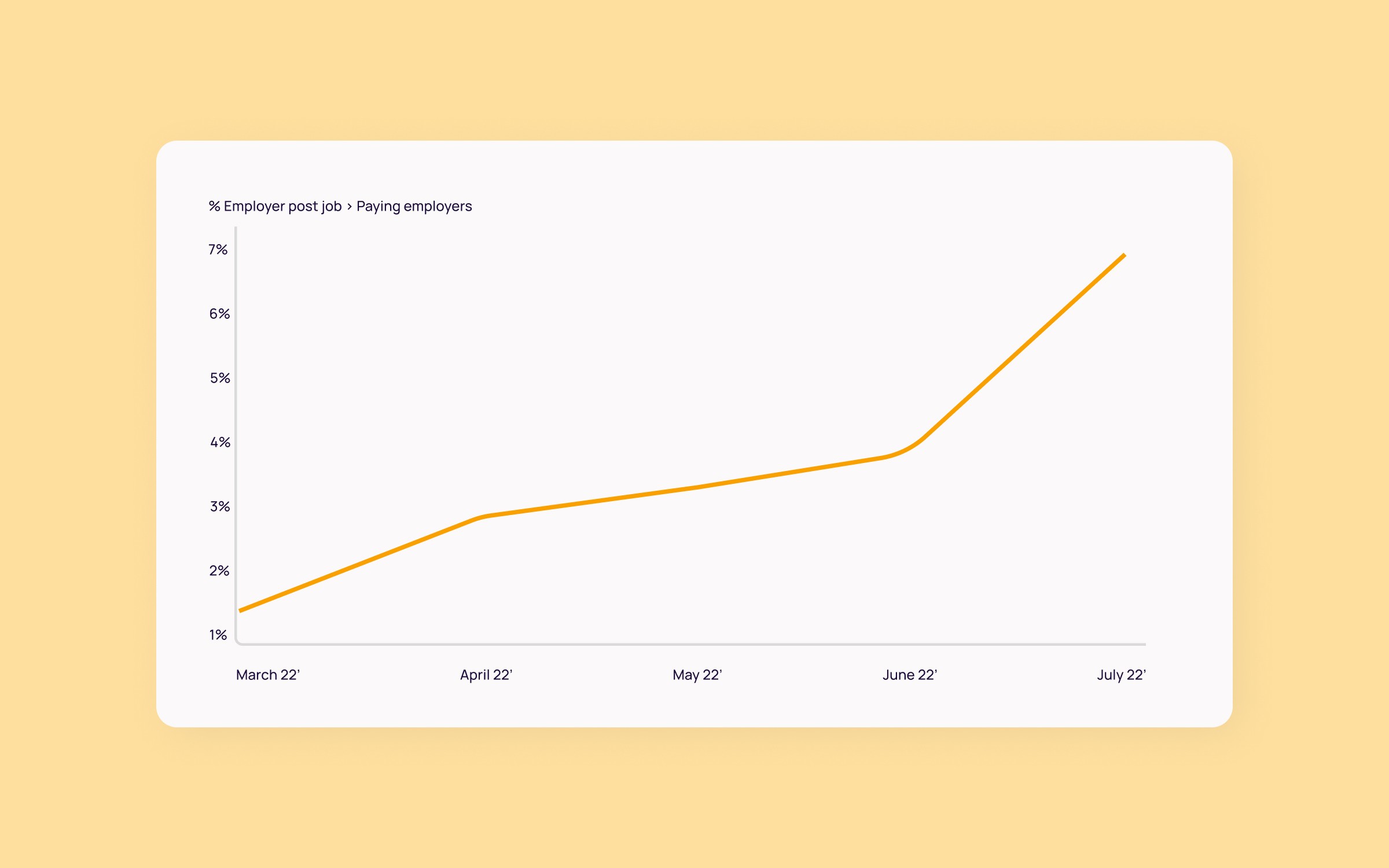 In March 2020 when we initially launched, the conversion rate from free to paid employers was only 1.4%.