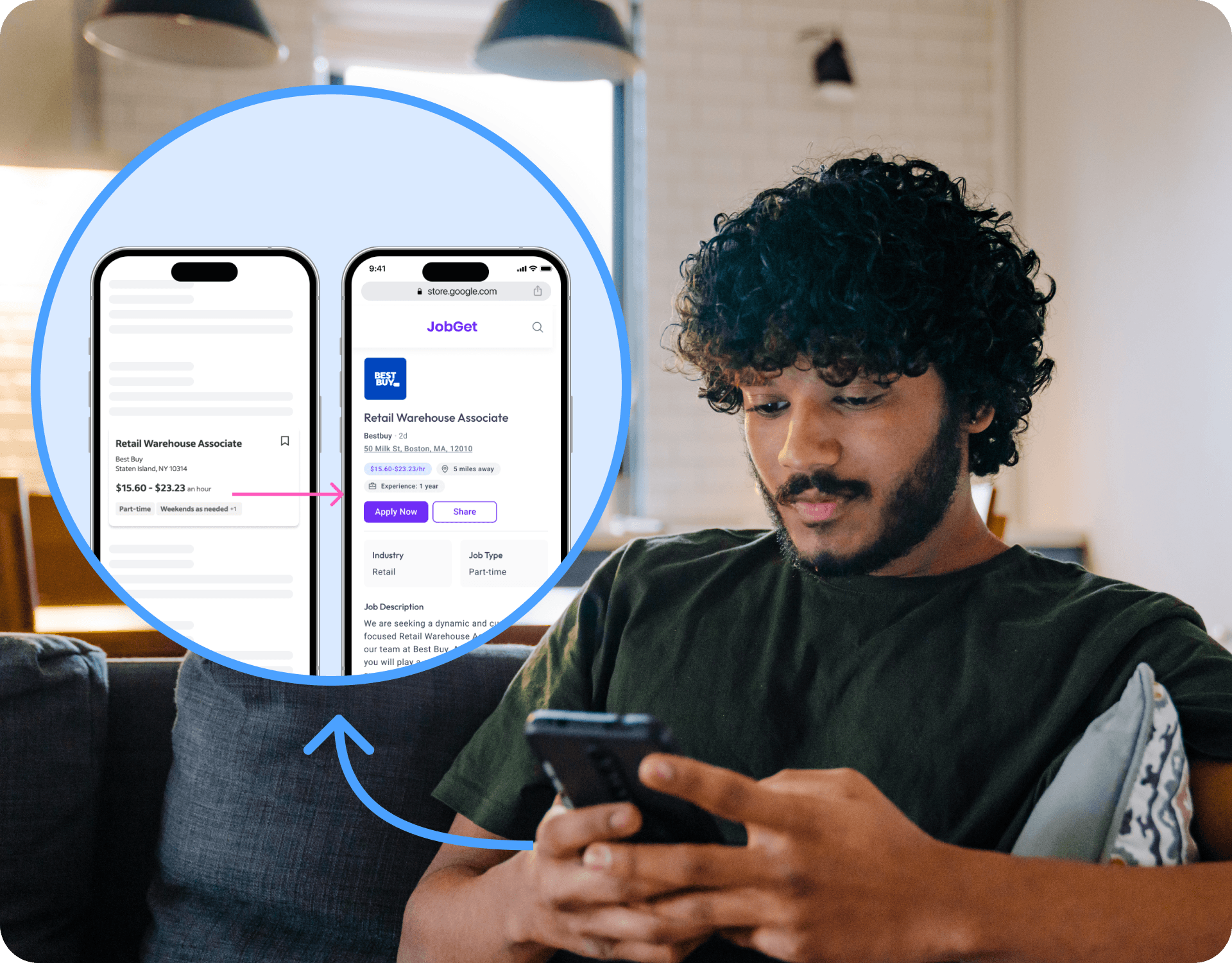 As a job seeker, you might browse various job sites looking for opportunities. For example, if you click on a job posting on Indeed, it may open a web page on JobGet.
